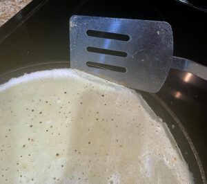 My mom told me a normal frying pan would work, but it does change the texture of the pancake. If you don’t have a griddle, you could try a regular frying pan and treat it more like a crepe in how you cook it. If you have a griddle or can get one, I highly recommend it.